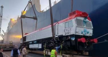 ميناء الإسكندرية يستقبل أول جرار أمريكى لجر القطارات الإسبانية الجديدة.. صور