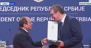 لحظة تقليد الرئيس السيسى وسام جمهورية صربيا من جانب ألكسندر فوتشيتش أخبار By إبراهيم حسن On يوليو 20, 2022 قلد الرئيس الصربي ألكسندر فوتشيتش الرئيس عبد الفتاح السيسي وسام جمهورية صربيا. صرح بذلك السفير بسام راضى، المتحدث الرسمي باسم رئاسة الجمهورية Share FacebookTwitterWhatsAppEmailFacebook Messenger