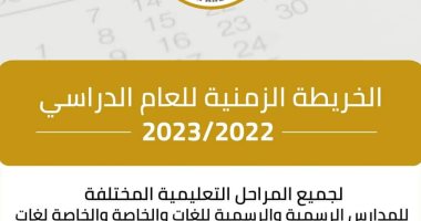 أعلنت وزارة التربية والتعليم والتعليم الفني عن الخريطة الزمنية للعام الدراسي 2022_2023 لجميع مراحل التعليم المختلفة للمدارس الرسمية والرسمية للغات والخاصة والخاصة للغات.