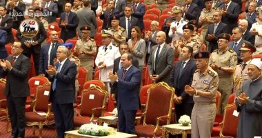 الرئيس السيسي والمشاركون فى الندوة التثقيفية يقفون لتحية أبطال أكتوبر