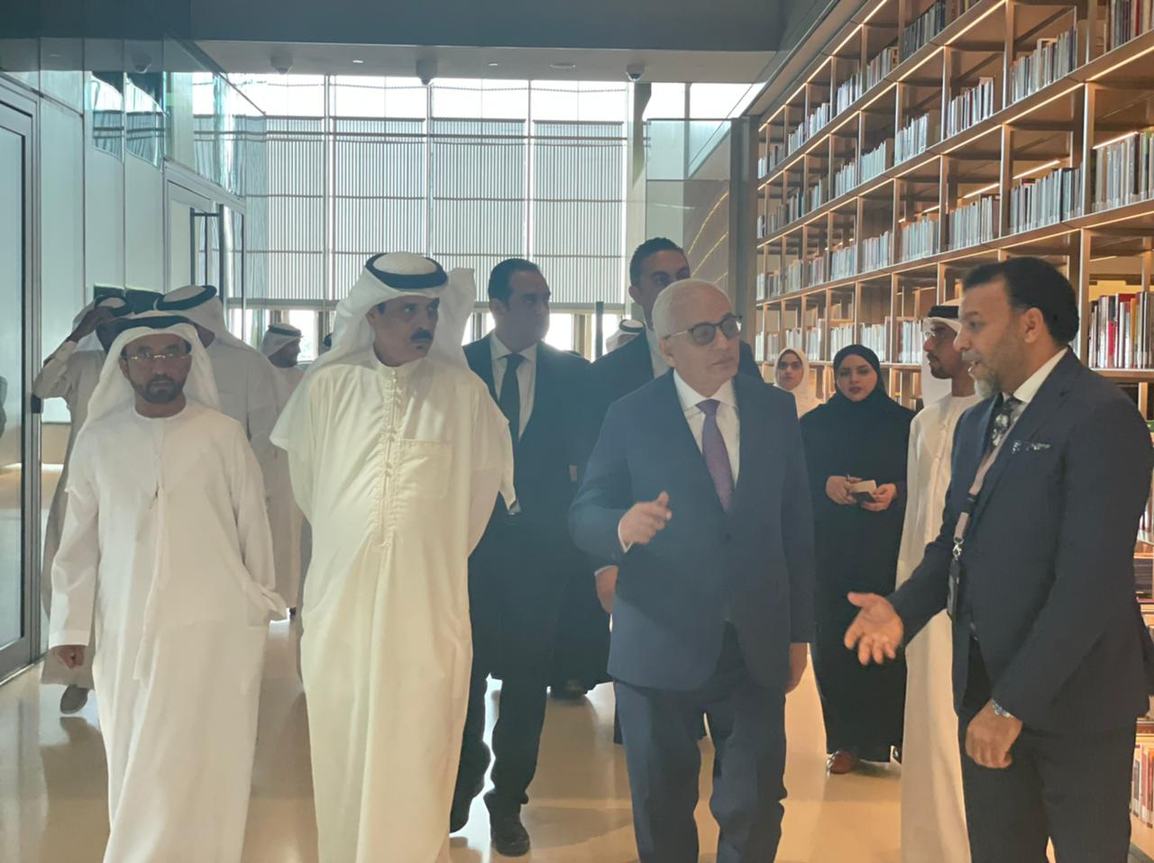 كما زار الوزير مكتبة بيت الحكمة، والتي تم إنشاؤها على مساحة 12 ألف متر مربع، وتضم ما يقرب من مئات الآلاف من الإصدارات في مختلف التخصصات، منها 11 ألف بلغات مختلفة و105 آلاف كتاب ورقي ونحو 250 ألف كتاب إلكتروني.