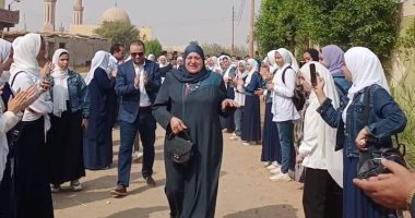 طلاب مدرسة ببنى سويف ينظمون ممرا شرفيا بطول 500 متر تكريما للمديرة