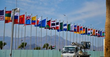 أعلام الدول المشاركة فى قمة تغير المناخ تزين سماء شرم الشيخ
