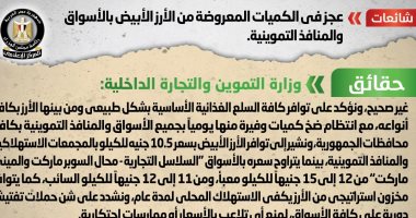 كشف المركز الإعلامي لمجلس الوزراء إنه فى ضوء ما تردد من أنباء بشأن عجز في الكميات المعروضة من الأرز الأبيض بالأسواق والمنافذ التموينية، تواصل المركز مع وزارة التموين والتجارة الداخلية، والتي نفت تلك الأنباء، مُؤكدةً أنه لا صحة لوجود عجز في الكميات المعروضة من الأرز الأبيض بالأسواق والمنافذ التموينية، مُؤكدةً على توافر كافة السلع الغذائية الأساسية بشكل طبيعي ومن بينها الأرز بكافة أنواعه، مع انتظام ضخ كميات وفيرة منها يومياً بجميع الأسواق والمنافذ التموينية بكافة محافظات الجمهورية، مُشيرة إلى توافر الأرز الأبيض بسعر 10.5 جنيه للكيلو بالمجمعات الاستهلاكية والمنافذ التموينية، بينما يتراوح سعره بالأسواق “السلاسل التجارية – محال السوبر ماركت والميني ماركت” من 12 إلى 15 جنيهاً للكيلو معبأ، ومن 11 إلى 12 جنيهاً للكيلو السائب، كما يتوافر مخزون استراتيجي من الأرز يكفي الاستهلاك المحلي لمدة عام، مُشددة على شن حملات تفتيش دورية على كافة الأسواق، لمنع أي تلاعب بالأسعار أو ممارسات احتكارية.