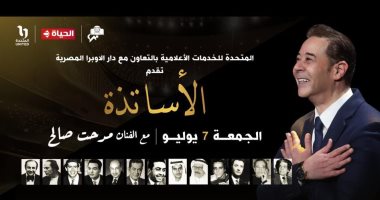 ويقدم الفنان مدحت صالح خلال الحفل ملحمة غنائية كبيرة ومتميزة لعمالقة الغناء من الزمن الفنى الجميل، من بينهم فريد الأطرش وبليغ حمدى ومحمد عبد الوهاب وكمال الطويل، وغيرهم من مصر والوطن العربى.