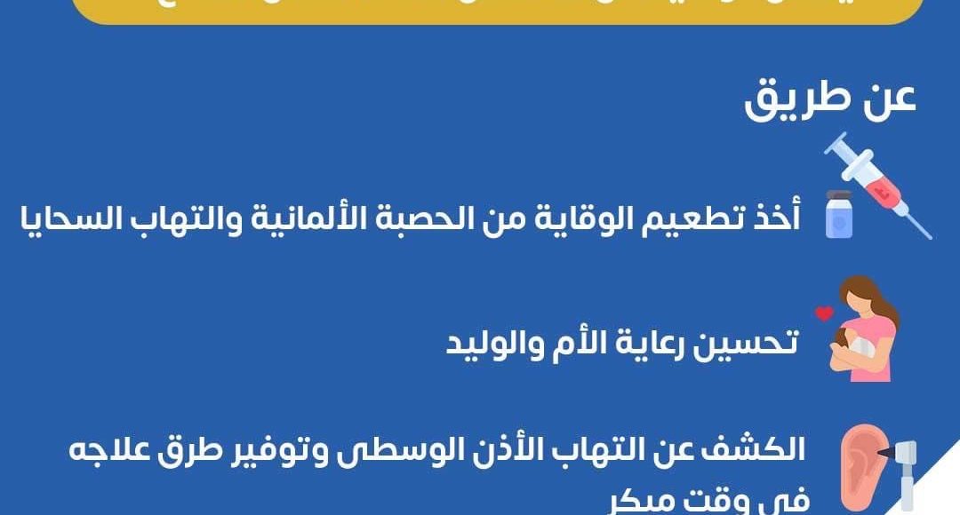 قالت وزارة الصحة والسكان إنه يمكن الوقاية من 60% من حالات فقدان السمع عن طريق تطعيم الوقاية من الحصبة الألمانية والتهاب السحايا وتحسين رعاية الأم للمواليد والكشف عن التهاب الأذن الوسطى وتوفير طرق علاجة في وقت مبكر .