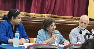 سميرة محسن وهشام سليمان فى المؤتمر الصحفي لمهرجان شرم الشيخ للمسرح الشبابي
