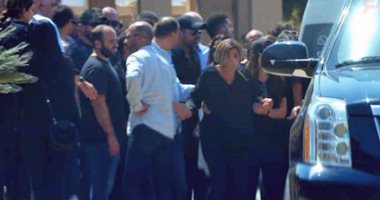 انهيار دينا الشربيني فى جنازة والدتها والنجوم يواسونها