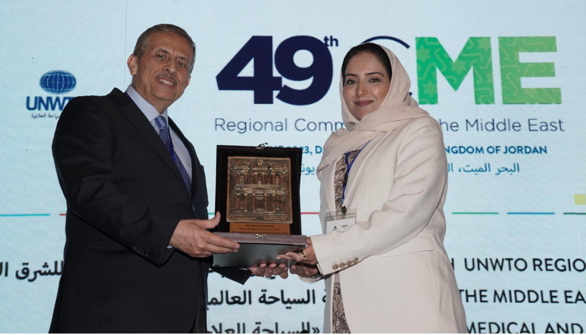 وخلال هذه الجلسة تم تناول موضوع “كيفية بناء علامة إقليمية للسياحة في الأوقات غير المستقرة” كجزء من مبادرات منظمة الأمم المتحدة للسياحة في دعم انتعاش السياحة – من قبل الوزراء المشاركين، بالإضافة إلى أصحاب المصلحة البارزين الذين يمثلون قطاع السياحة في المنطقة، خاصةً وأن منطقة الشرق الأوسط، قد عانت من سلسلة من الصدمات العالمية منذ جائحة عام 2020، وعلى الرغم من ذلك فقد أظهرت اقتصاداتها مرونة استثنائية، مما رسم توقعات اقتصادية إيجابية للمنطقة. كما ركزت المناقشات على استكشاف المشهد الحالي لمنطقة الشرق الأوسط، وتسليط الضوء على الفرص والتحديات والآفاق الاقتصادية المتطورة في مواجهة الأحداث الجارية وكذلك الاتجاهات الحالية والآفاق قصيرة الأجل في المنطقة – في سياق السيناريو الحالي. كما تناول الحضور السياسات والاستراتيجيات الرامية إلى تعزيز التعافي وتعزيز مساهمة السياحة في التنمية الاجتماعية والاقتصادية الشاملة والمستدامة، فضلا عن النهوض بأهداف الأمم المتحدة للتنمية المستدامة. ورغم الأحداث الحالية في المنطقة، فإن إقليم الشرق الأوسط ما زال هو الإقليم الأنشط والأسرع نموا وتعافيا على مستوى العالم، وهذا ما أثبته مقياس السياحة الدولي في المنظمة في جميع تقاريره الإحصائية التي عقبت جائحة كورونا وبعد إعادة فتح السفر والأجواء حول العالم.